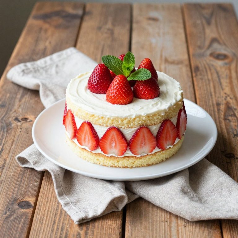 - Top It Off: Carefully place the top layer of cake over the strawberries and whipped cream. Spread the remaining whipped cream over the top and arrange the remaining strawberries on top in a decorative pattern.