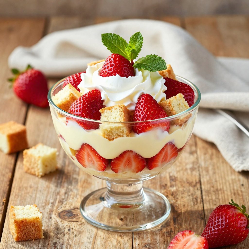 - Garnish with Fresh Strawberries: Before serving, garnish the top of the trifle with fresh strawberry slices for an extra touch of elegance.
