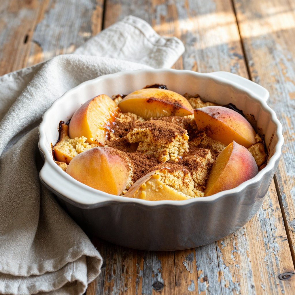 A classic dessert featuring sweet peaches baked under a golden, buttery cobbler topping. Perfect for any occasion!